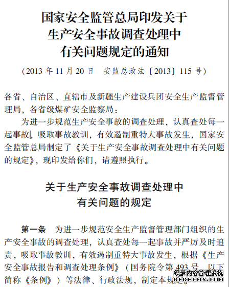 國家安全監(jiān)管總局印發(fā)關于 生產安全事故調查處