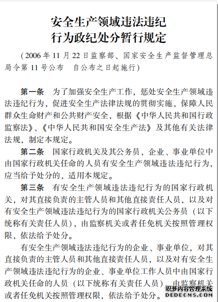 安全生產(chǎn)領(lǐng)域違法違紀(jì) 行為政紀(jì)處分暫行規(guī)定