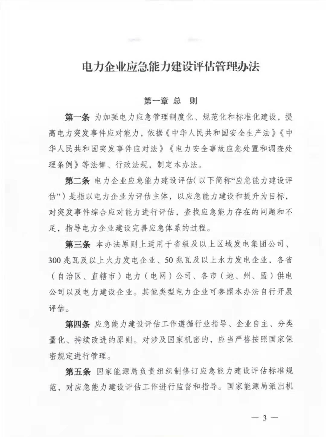 國家能源局印發(fā)《電力企業(yè)應(yīng)急能力建設(shè)評估管理辦法》