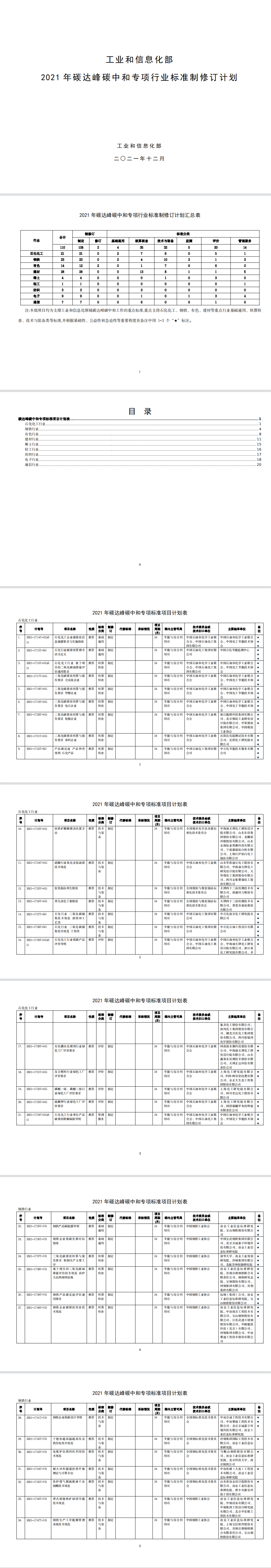 為發(fā)揮標(biāo)準(zhǔn)在推進(jìn)工業(yè)領(lǐng)域碳達(dá)峰碳中和工作的引領(lǐng)和規(guī)范作用,我部編制完成了2021年碳達(dá)峰碳中和專項行業(yè)標(biāo)準(zhǔn)制修訂項目計劃?,F(xiàn)印發(fā)給你們,請認(rèn)真組織落實。有關(guān)事項通知如下: