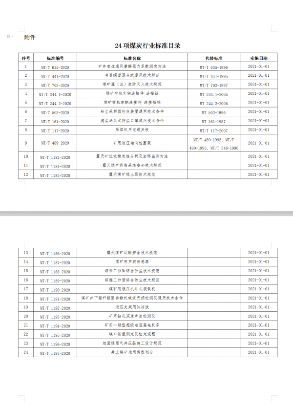 附件:24項煤炭行業(yè)標(biāo)準(zhǔn)目錄