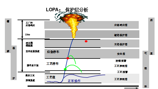 LOPA是由事件樹分析發(fā)展而來的一種風(fēng)險(xiǎn)分析技術(shù),作為辨識(shí)和評(píng)估風(fēng)險(xiǎn)的半定量工具,是溝通定性分析和定量分析的重要橋梁與紐帶。LOPA耗費(fèi)的時(shí)間比定量分析少,能夠集中研究后果嚴(yán)重或高頻率事件,善于識(shí)別、揭示事故場(chǎng)景的始發(fā)事件及深層次原因,集中了定性和定量分析的優(yōu)點(diǎn),易于理解,便于操作,客觀性強(qiáng),用于較復(fù)雜事故場(chǎng)景效果甚佳。所以在工業(yè)實(shí)踐中一般在定性的危害分析如HAZOP,檢查表等完成之后,對(duì)得到的結(jié)果中過于復(fù)雜的、過于危險(xiǎn)的以及提出了SIS要求的部分進(jìn)行LOPA,如果結(jié)果仍不足以支持最終的決策,則會(huì)進(jìn)一步考慮如QRA等定量分析方法。