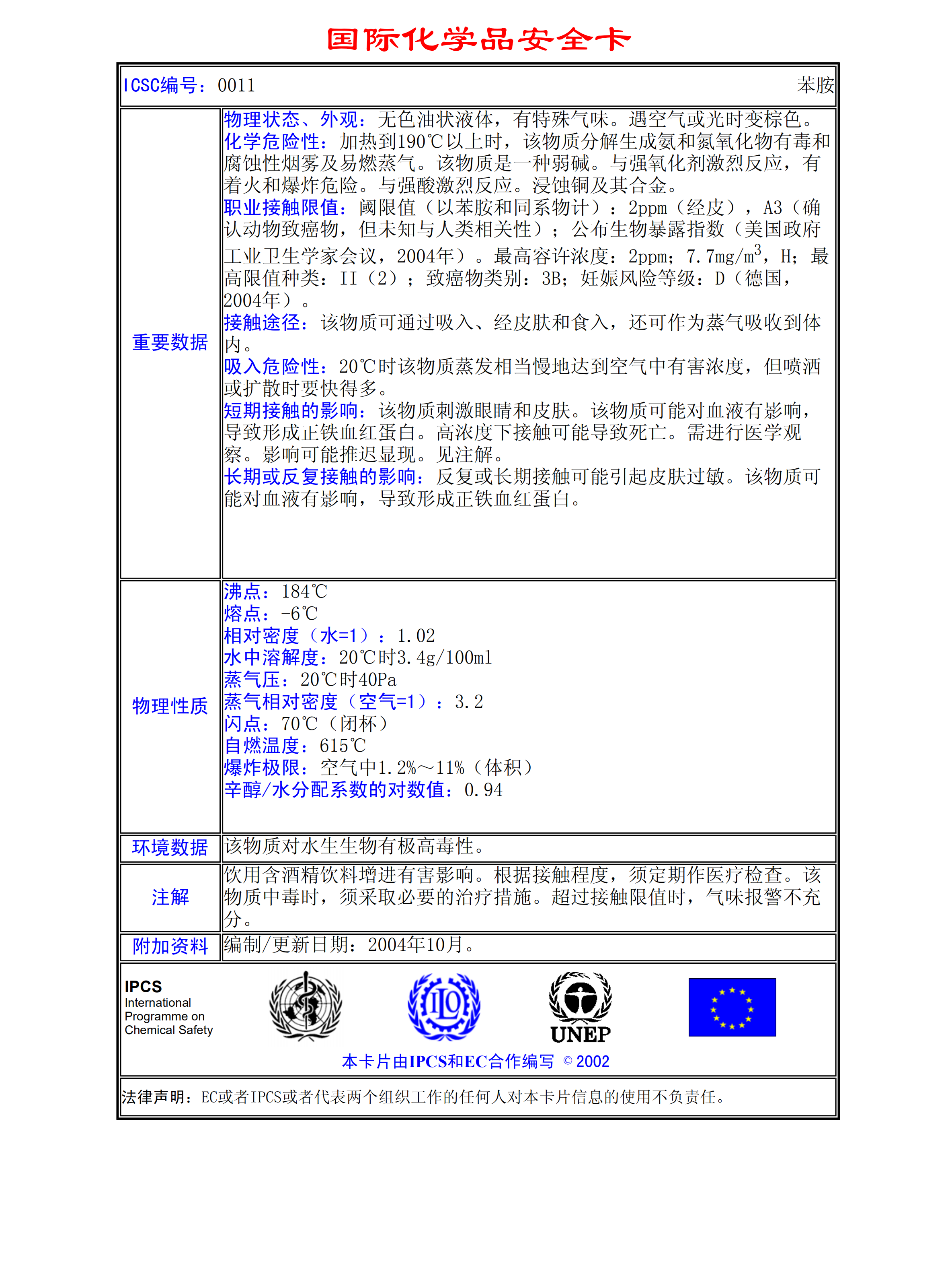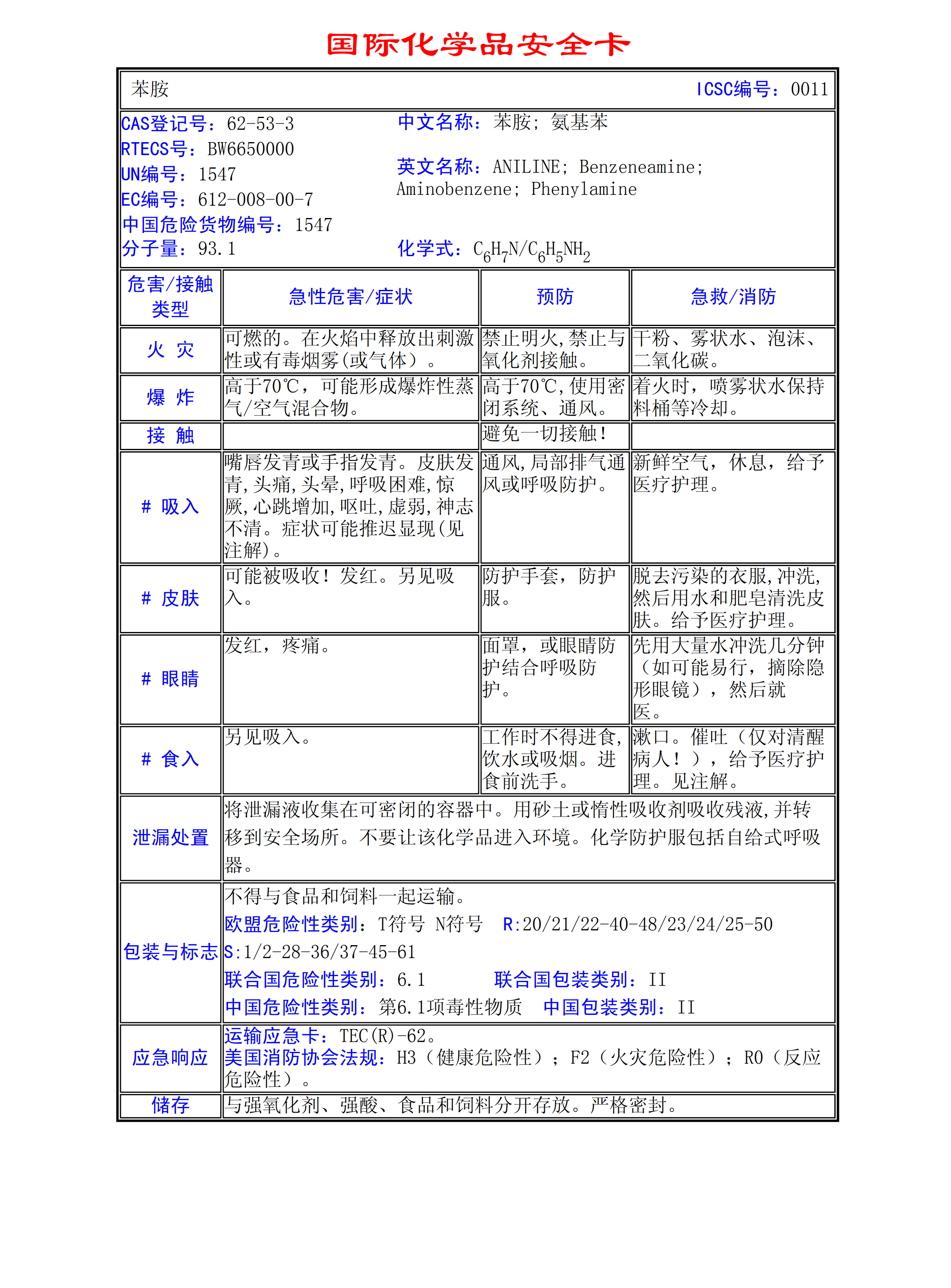 苯胺MSDS