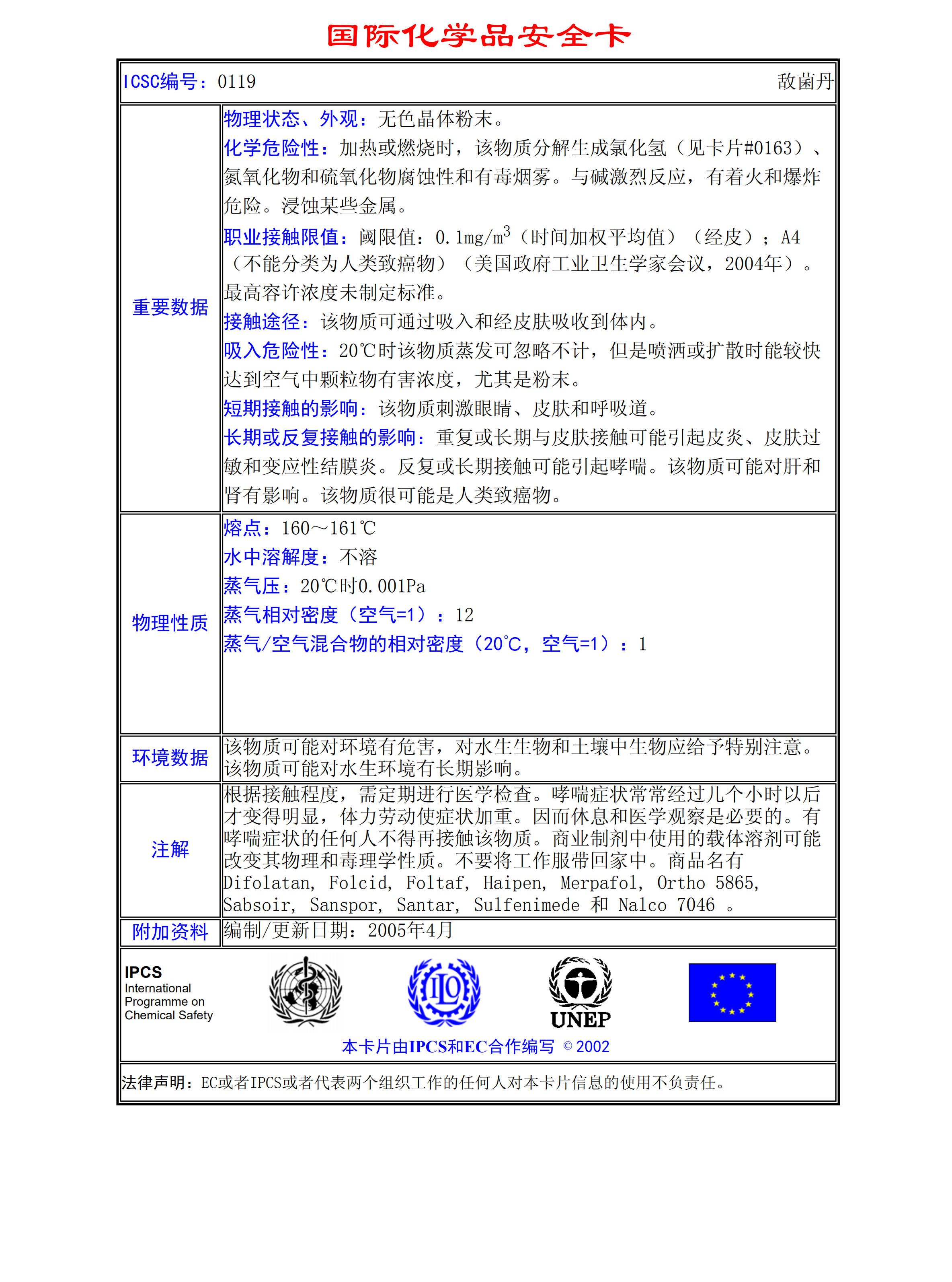 敵菌丹MSDS