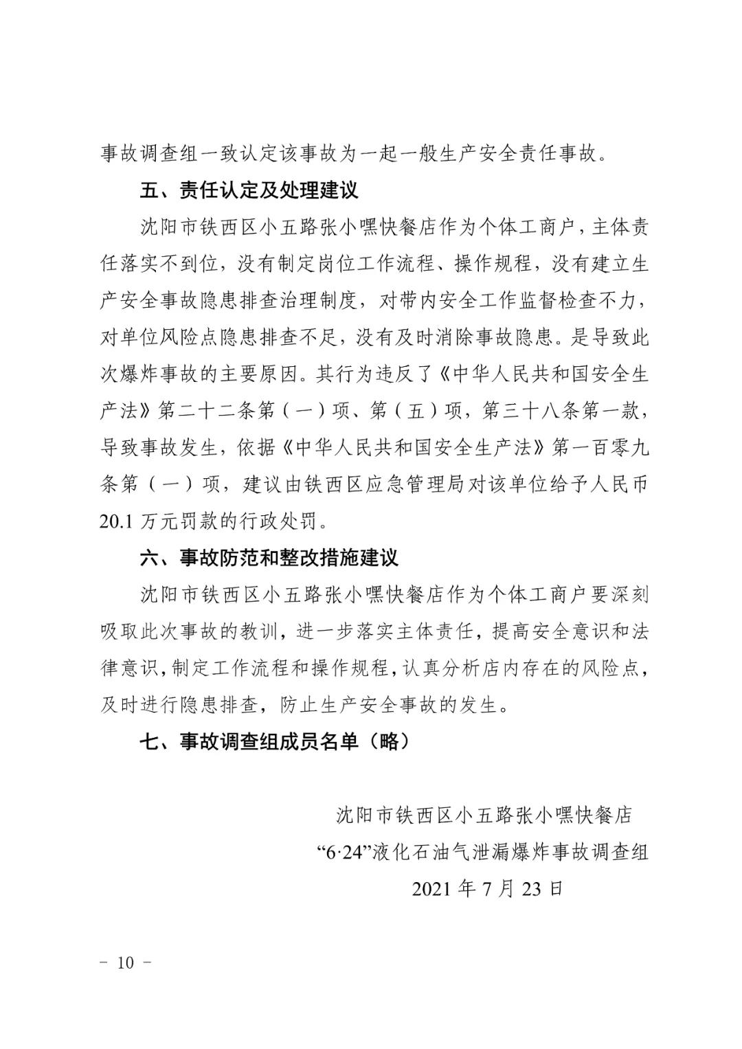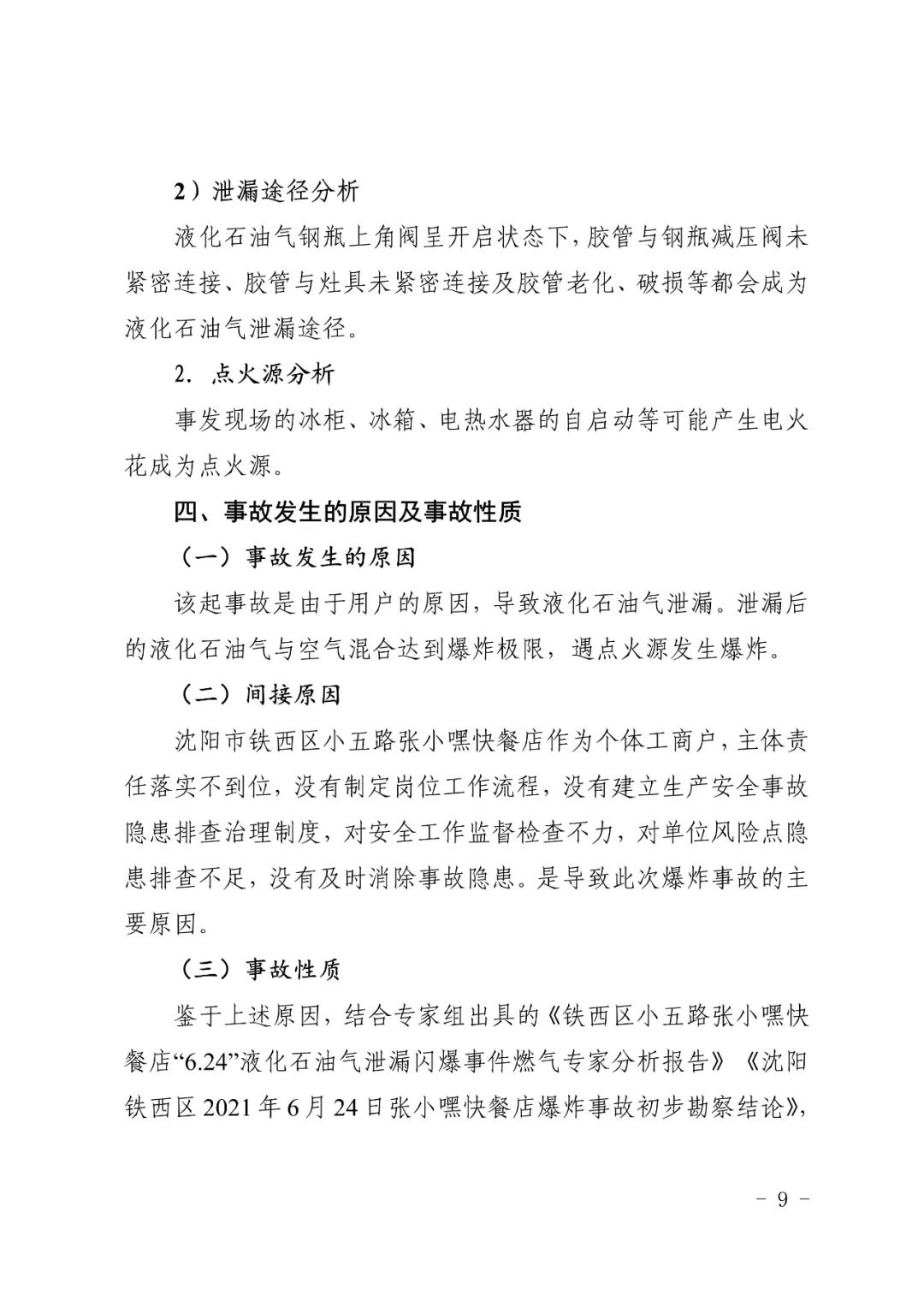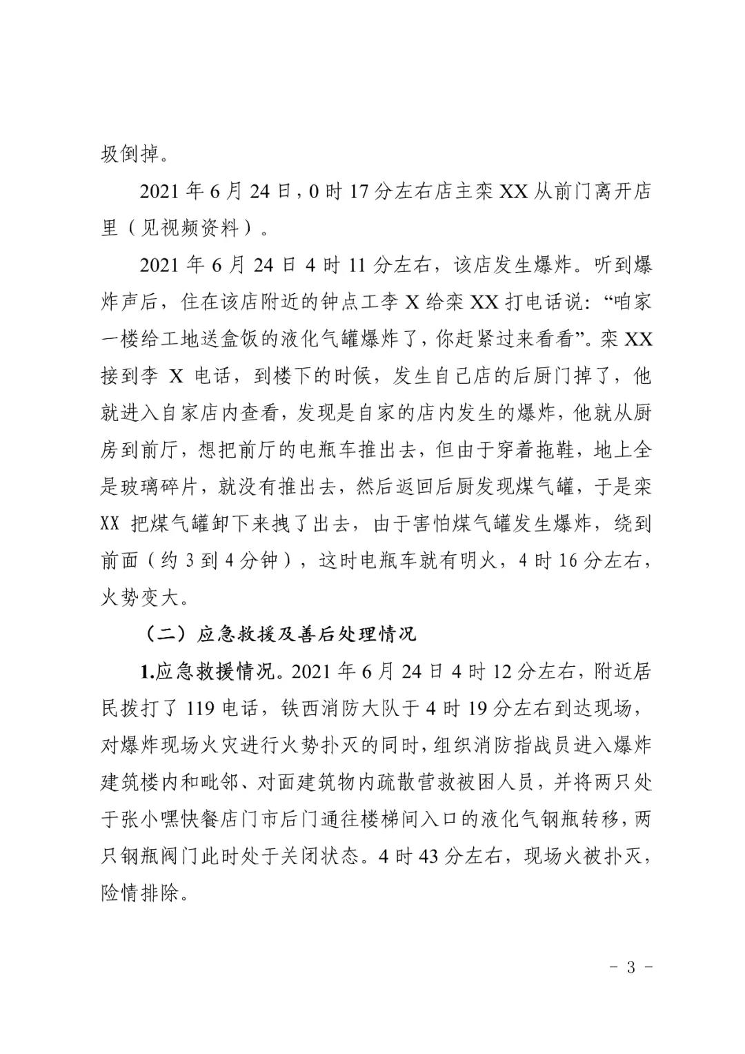 2021 年 6 月 24 日 4 時(shí) 11 分左右,位于沈陽(yáng)市鐵西區(qū)小五路 54 號(hào) 3 門,沈陽(yáng)市鐵西區(qū)小五路張小嘿快餐店內(nèi)發(fā)生液化石油氣泄漏爆炸,無(wú)人員傷亡,直接經(jīng)濟(jì)損失 70 余萬(wàn)元。