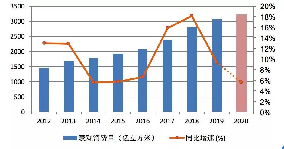 中國石油經(jīng)濟(jì)技術(shù)研究院今年年初預(yù)測,我國2020年天然氣消費(fèi)量將達(dá)到3300億立方米,同比增速8.6%。
