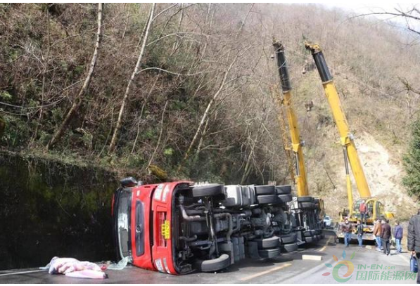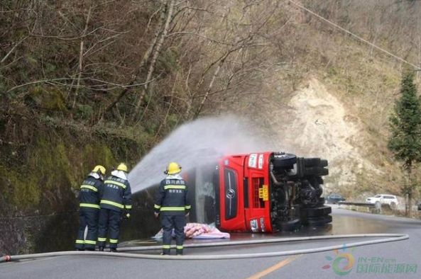 消防隊員10時48分到達(dá)現(xiàn)場,偵查發(fā)現(xiàn)天然氣槽車側(cè)翻在道路靠山體一旁。經(jīng)偵察,事故車輛為一輛裝載22噸液化天然氣槽罐車側(cè)翻,事故發(fā)生后車內(nèi)兩名司乘人員自行撤離出,身體并無大礙,車輛罐體表面無破損,未發(fā)生泄漏。