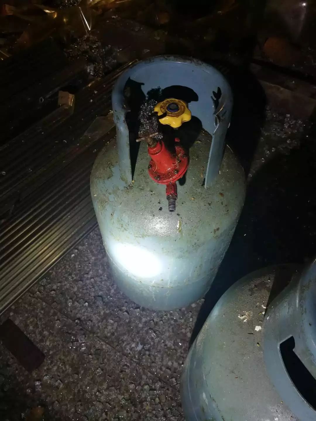 消防指戰(zhàn)員趕到現(xiàn)場后通過詢問知情人并經(jīng)現(xiàn)場偵查確認(rèn)得知,此次事故發(fā)生的原因是店主離店后未關(guān)緊煤氣罐閥門,造成煤氣泄漏,當(dāng)空氣中的煤氣達(dá)到一定濃度后,遇上明火(煤爐內(nèi)未完全熄滅的煤球)發(fā)生爆炸。現(xiàn)場煤氣爆炸沖擊波使餐館內(nèi)一片狼藉,滿地都是玻璃碎渣、面館內(nèi)天花板脫落,隔壁店面遭受不同程度的損害,造成巨大經(jīng)濟(jì)損失。房縣消防到場后,立即進(jìn)入屋內(nèi)將五個(gè)煤氣罐放于安全地帶。