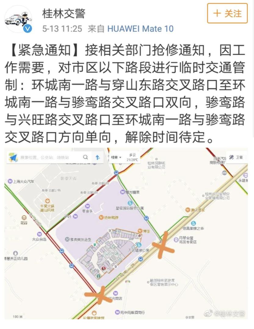 中午12時,@廣西消防官微發(fā)布了一警情速報:5月13日9時2分,桂林消防支隊接到報警:七星區(qū)萬達廣場1號門附近路上一下水管道冒煙。9時7分,消防員到達到場,經(jīng)了解現(xiàn)場為附近和平村管道施工時不慎挖斷燃氣管道造成泄漏,新奧燃氣公司技術(shù)人員正在進行處置。消防員協(xié)助現(xiàn)場交警進行警戒和監(jiān)護,無人員傷亡。