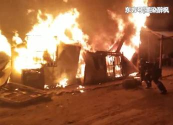 消防人員到達(dá)火災(zāi)現(xiàn)場時(shí),板房正猛烈燃燒,火苗躥出兩米高,濃濃黑煙不斷冒出。就在起火的板房外,一個(gè)煤氣罐正橫臥在地上,情況十分危急。消防員迅速用兩支水槍,近距離對明火進(jìn)行壓制。