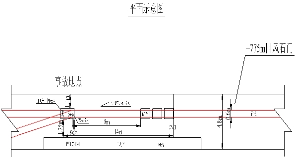 +775m回風(fēng)石門設(shè)計(jì)長度580m,已施工241m,坡度3‰,直墻半圓拱斷面, 巷道凈寬4.8m,凈高4m,凈斷面積16.81㎡,支護(hù)方式為錨網(wǎng)索噴。巷道內(nèi)鋪設(shè)軌道軌距為600mm,事故地點(diǎn)鋪設(shè)單道。