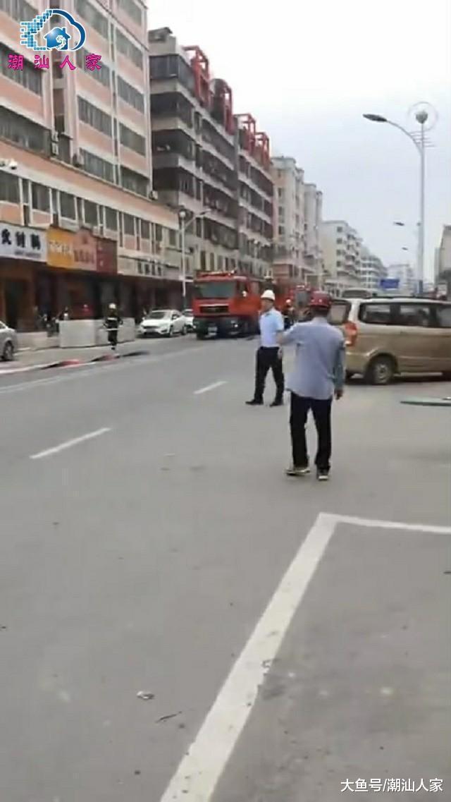 潮州發(fā)生一起天然氣管道泄漏事故, 現(xiàn)場拉起警戒線和疏散人群
