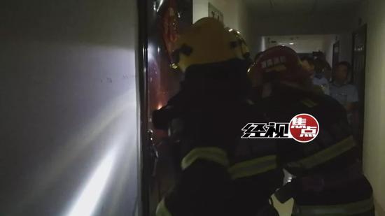 四分鐘后大門被破開,房間彌漫大量燃?xì)?,消防?duì)員丁煥章立即沖了進(jìn)去,他在廚房找到了被困的女業(yè)主。