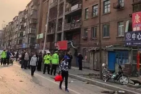 事發(fā)居民樓為紅磚樓,年頭較久,發(fā)生爆炸的是該棟樓3單元5樓一戶居民家,沿街散落著大量門窗、木條和一些生活用品。事發(fā)房間內(nèi)部和外走廊一片凌亂,門和窗戶全都被崩掉,灶臺(tái)上有焦糊的痕跡。
