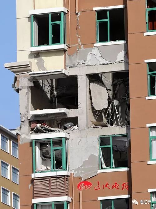 發(fā)生閃爆事故的是一棟臨街17層住宅樓的7樓,因位于西側(cè)房山位置,該住戶(hù)家所有的外墻都在沖擊力下被炸飛,僅剩立柱,最為嚴(yán)重的臥室位置,樓上和樓下的樓板幾乎被炸通,有的位置僅有鋼筋連接著大塊的樓板。整棟樓的玻璃大部分都碎掉了,一些受損不嚴(yán)重的住戶(hù)已經(jīng)用塑料布或者床單進(jìn)行了遮擋。